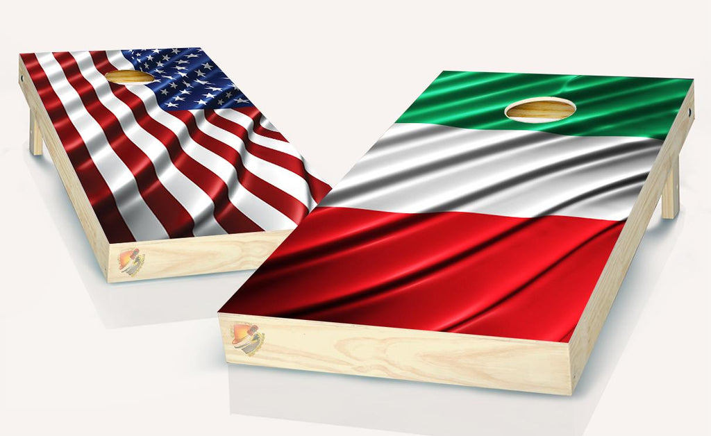America and Italy Flag Cornhole Board Vinyl Wrap Skins Laminated Sticker Decal Set