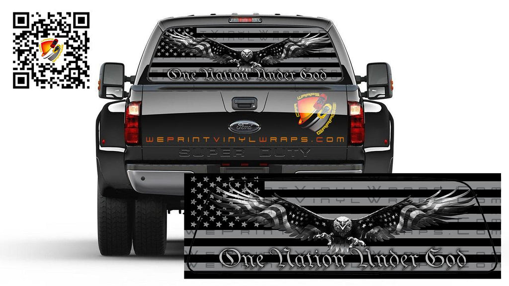 American Flag Black and Gray Bald Eagle One Nation Under God Rear Window Perforated Graphic Decal Vinyl Pickup Trucks Cars Campers