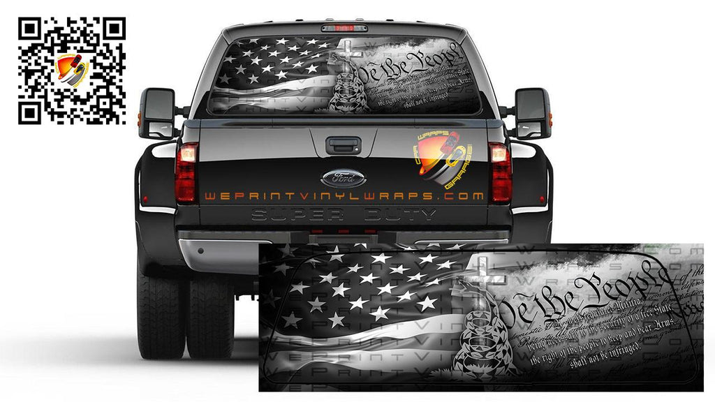 American Flag Black and White Cross Gadsden Don't Tread On Me We The People Patriotic Rear Window Perforated Graphic Decal Truck Cars Campers