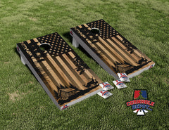 American Flag Forest Cabin Cornhole Board Vinyl Wrap Skins Laminated Sticker Decal Set Gifts