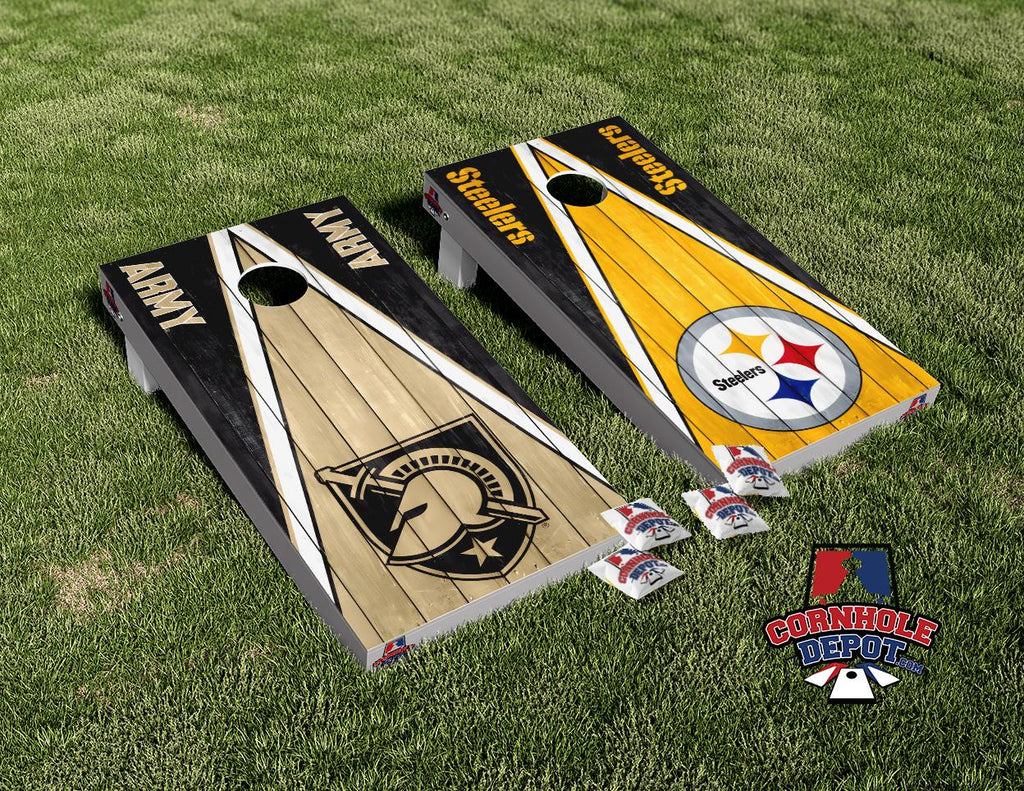 Army Black Knights and Pittsburgh Steelers Split Set Cornhole Board Vinyl Wrap Skins Laminated Sticker Set Decal