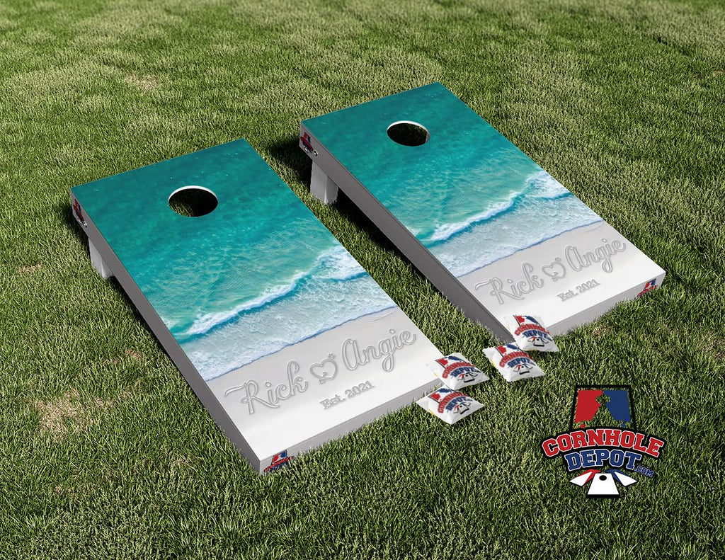 Beach Waves Custom Cornhole Board Vinyl Wrap Skins Laminated Sticker Set Decal