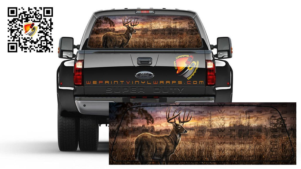 Buck Deer Sunset Rear Window Perforated Tint Graphic Decal Sticker Trucks Campers Cars SUV