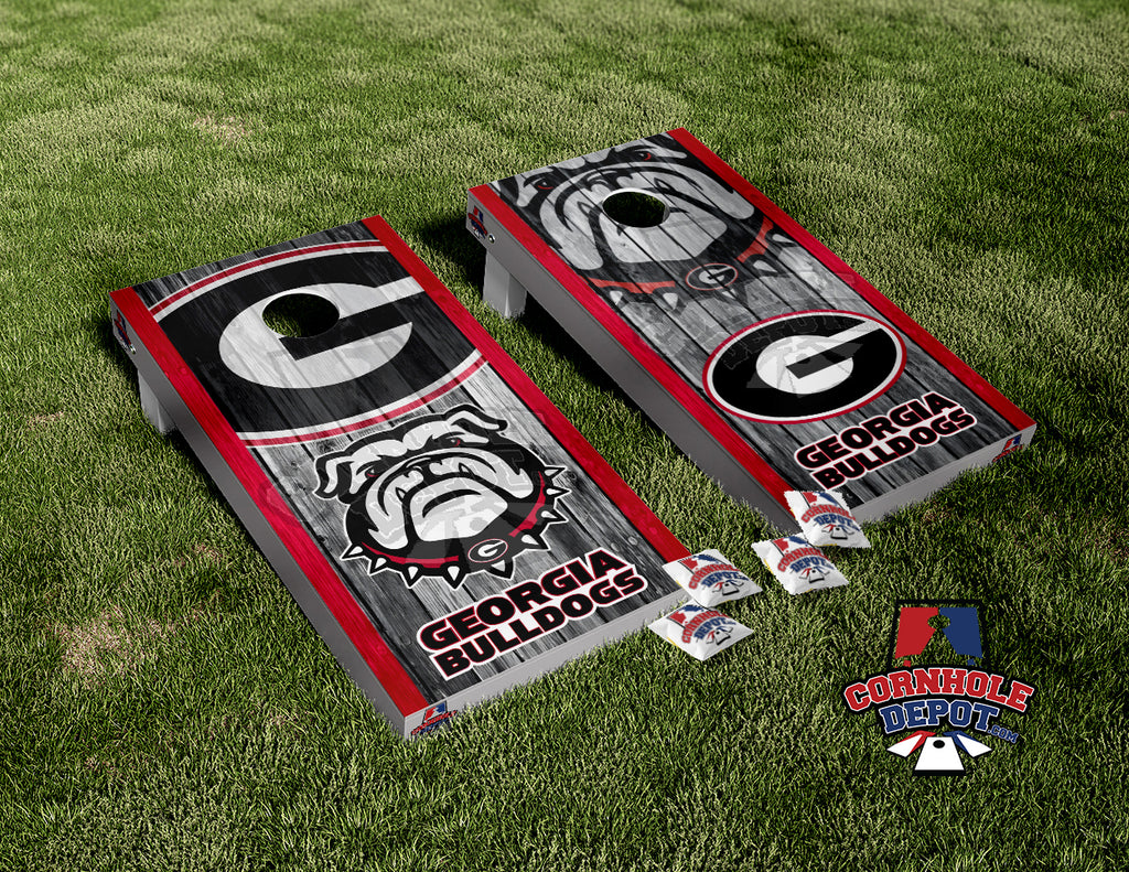 Georgia Bulldogs Washed Wood Cornhole Board Skins Vinyl Wrap Laminated Sticker Decal Set