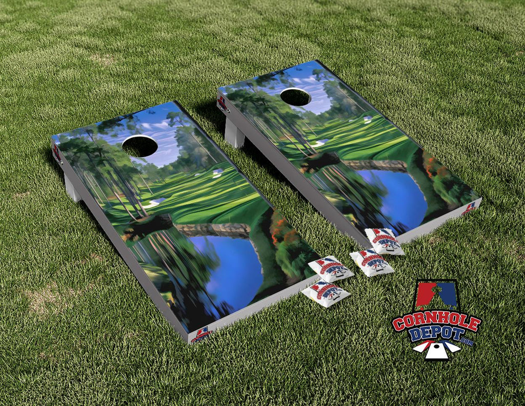 Golf Course Lake Cornhole Board Vinyl Wrap Skins Laminated Sticker Set Decal
