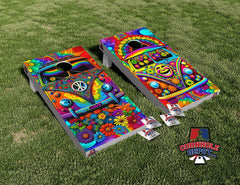 Hippie Van Flowers Colorful Cornhole Board Vinyl Wrap Skins Laminated Sticker Set Decal