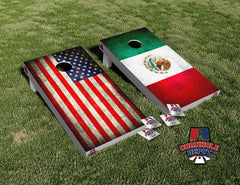 Mexican and American Flag Washed Cornhole Board Vinyl Wrap Skins Laminated Sticker Decal Set