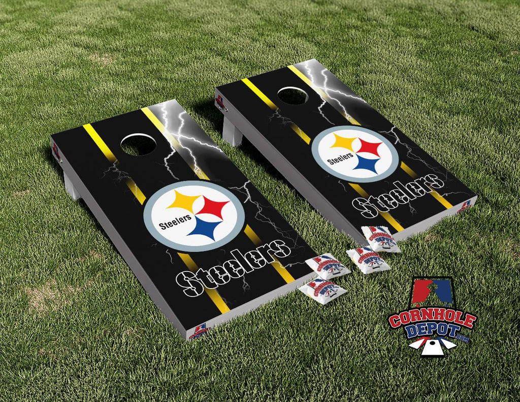 Pittsburgh Steelers Lighting Board Cornhole Board Vinyl Wrap Laminated Sticker Set Decal
