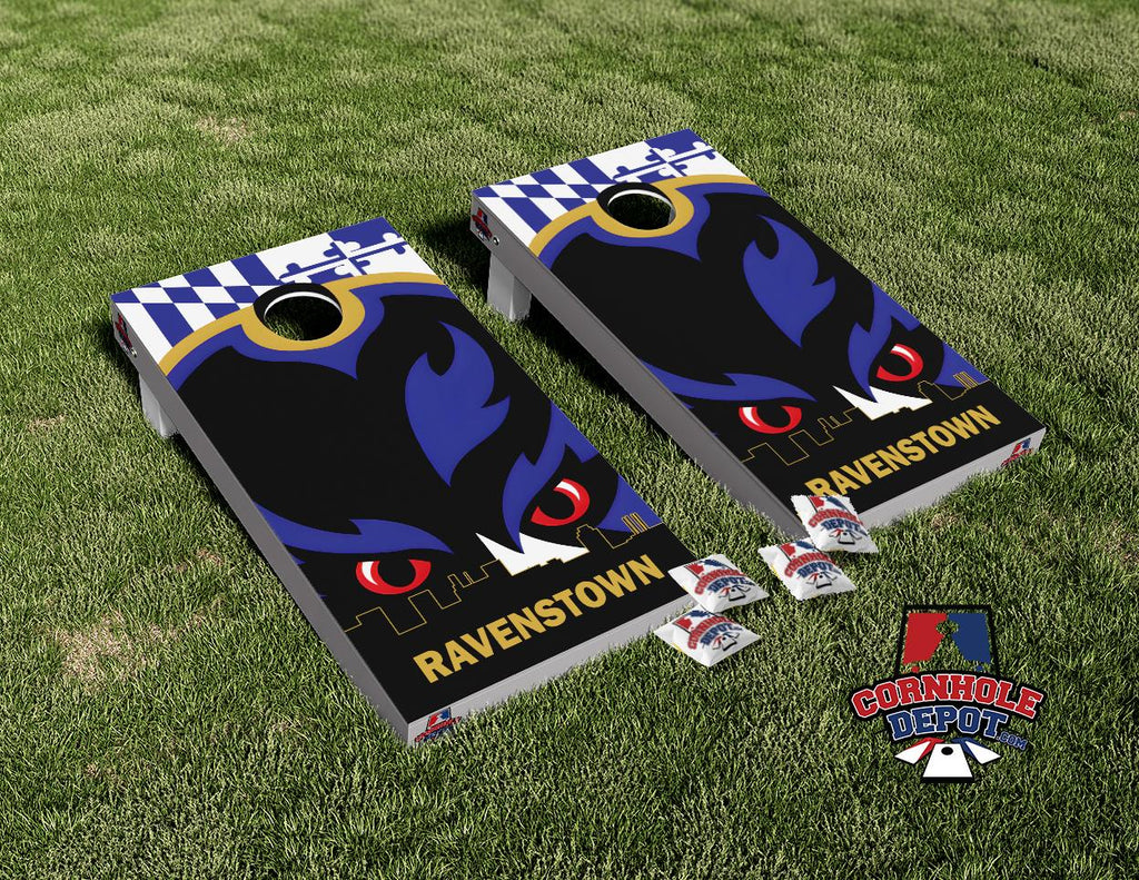 Ravens Baltimore Ravenstown Cornhole Board Vinyl Wrap Skins Laminated Sticker Set Decal