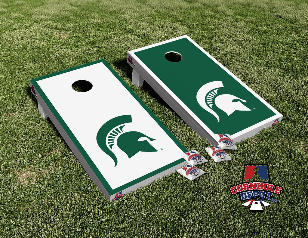 Spartans Michigan MSU Green and White Cornhole Board Vinyl Wrap Skins Laminated Sticker Set Decal
