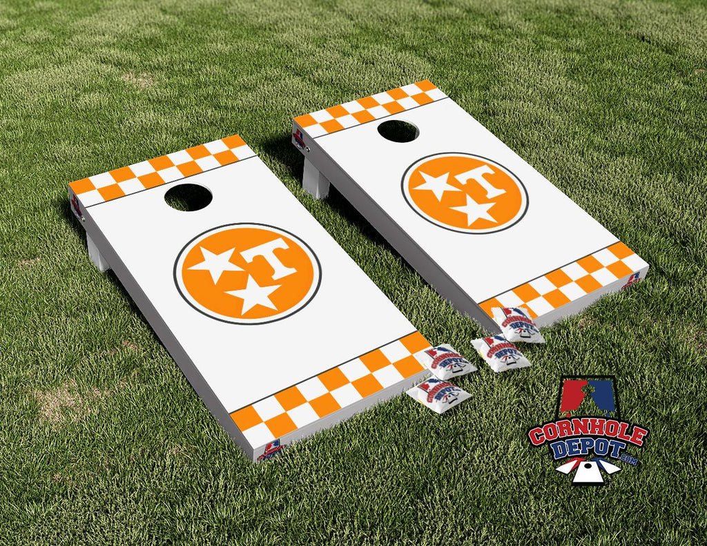 Tennessee Volunteer Checkered Cornhole Board Vinyl Wrap Laminated Sticker Set Decal